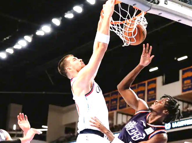 他完美填补了快船多年的“四号位空白”:过去几个赛季,快船四号位要么得分能力不足,要么防守覆盖有限;而科林斯既能在进攻端提供稳定输出——挡拆后定点投篮命中率达47%(训练营数据),本场既能命中外线投射,又能在篮下完成终结,连续暴扣展现爆发力;还能在防守端提供覆盖,从四号位换防到五号位,减轻祖巴茨、大洛佩兹的防守压力。